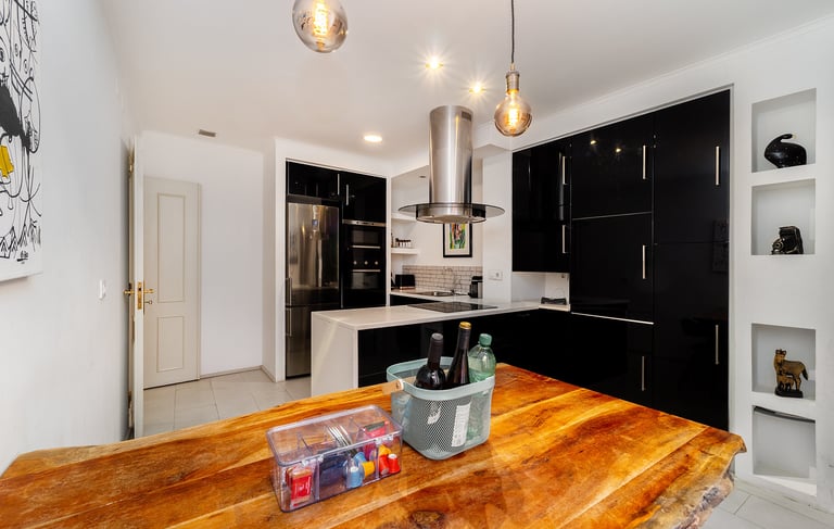 Enjoy the freedom of preparing your own meals in a fully stocked kitchen, with a cozy dining area perfect for enjoying a homemade meal.